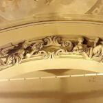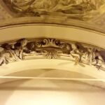 9 - Pietro Francavilla, San Pier Damiani (E); la lunetta presenta due monumentali angeli, quasi distesi sui timpani della porta sottostante, che sembrano volere uscire fuori dalla lunetta. I due angeli sollevano un drappo per mostrare il busto di san Michele (11)
