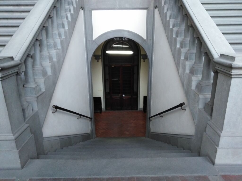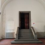 Accesso da via degli Alfani in legno e metallo, lastra con l'iscrizione in marmo, porta d'accesso dal chiostro degli Angeli in legno (esterno), metallo e vetro (interno); targhe esplicative delle opere in metallo, vetrate della facciata in metallo e vetro
