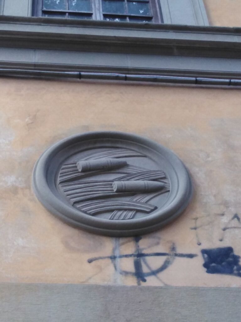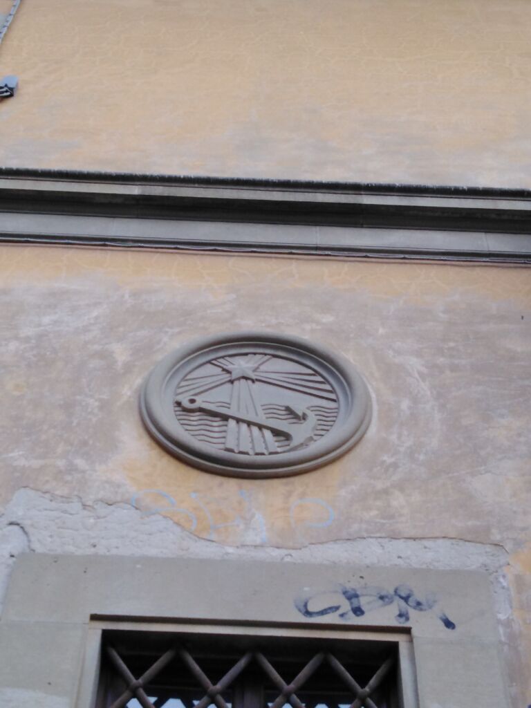 1 - il bassorilievo A, in cui si vede un'ancora in mezzo al mare, rappresenta la Marina (FONTE: Wikipedia, Casa del Mutilato (Firenze) - https://it.wikipedia.org/wiki/Casa_del_Mutilato_(Firenze));