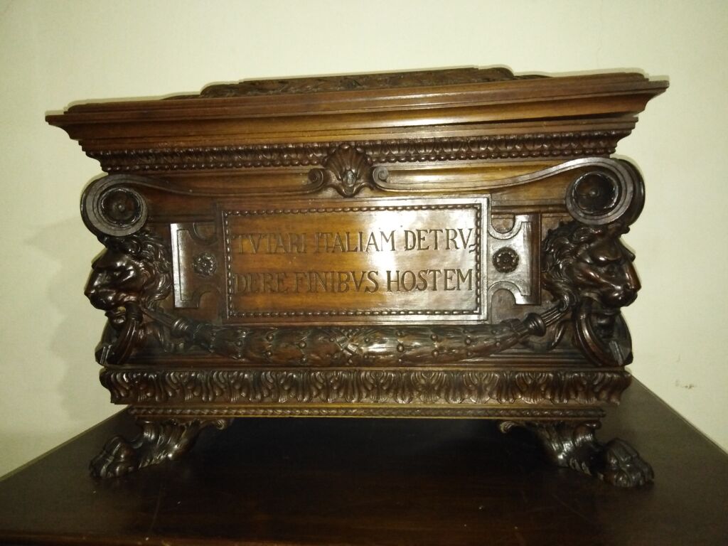 Nel cartiglio posto sulla sommità dell'arco rivolto verso la sala del Cenacolo è presente l'emblema dell'ANMIG.