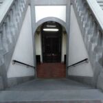 Lastre funerarie del corridoio d'accesso in metallo e marmo, pavimento in marmo, porta d'accesso in pietra