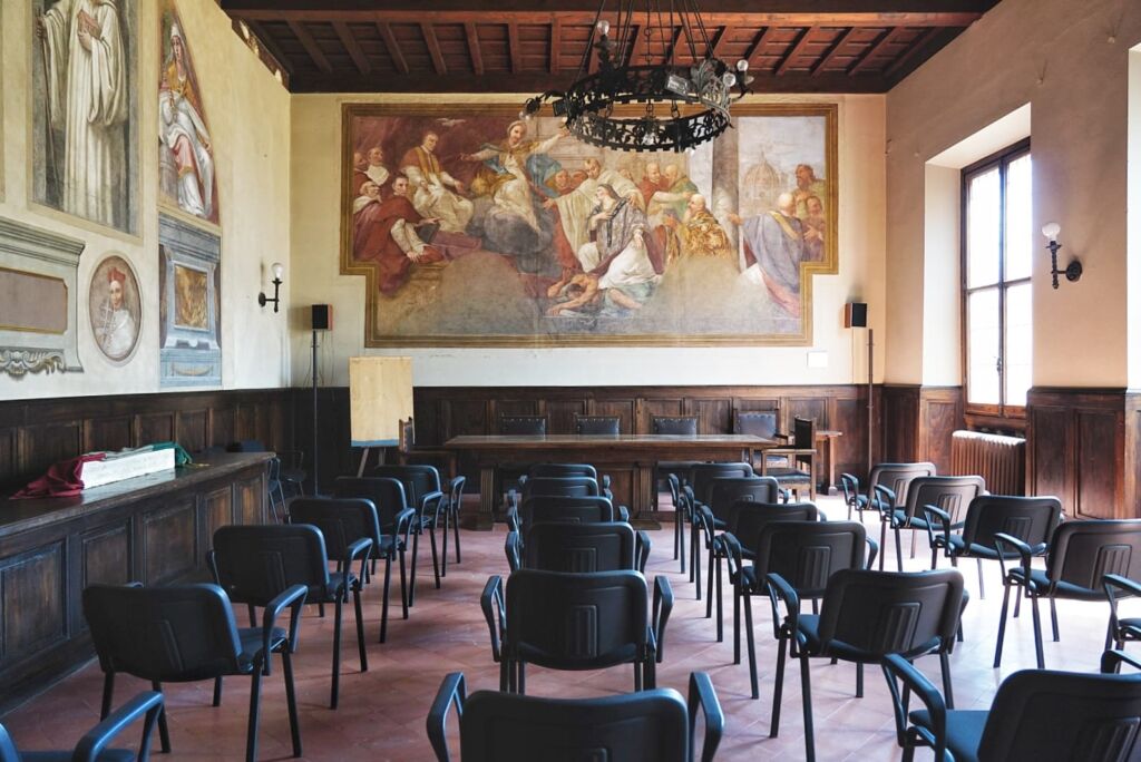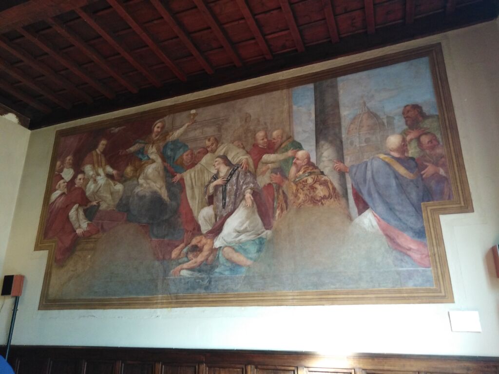 Sul fondo della sala l'affresco, alto 3,10 metri e largo 6, che raffigura "Il Concilio di Firenze del 1439", opera di Pier Dandini (1646 - 1712) realizzata all'inizio del 700. L'affresco si trovava in origine nella biblioteca del monastero e fu staccato nel 1934. Si tratta di una celebrazione dell'evento storico del Concilio di Firenze e del suo artefice Ambrogio Traversari, generale dell'ordine camaldolese che per molti anni visse nel monastero. Traversari è al centro del dipinto in atteggiamento di condurre la chiesa greca al Papa Eugenio IV, sotto la protezione dell'Unione, figura allegorica a braccia aperte. La chiesa ortodossa è raffigurata come una donna in abiti orientali che calpesta un demone, lo scisma, che ha sotto il braccio un libro da cui esce un serpentello, l'eresia. Sullo sfondo è visibile la Cattedrale di Santa Maria del Fiore di Firenze.