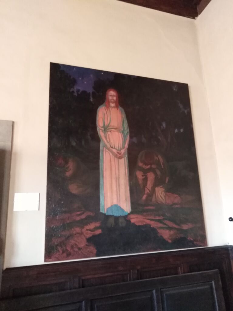 Nella parte della sala contrapposta all'affresco di Pier Dandini, sulla parete di sinistra, in alto, un affresco raffigurante una Madonna col Bambino staccata da un muro del monastero prima che venisse abbattuto e più sotto una sinopia e una immagine di Madonna col Bambino attribuita al Beato Angelico (1395 - 1455). Sulla stessa parete, a destra della porta d'ingresso alla sala, un grande quadro a olio di Galileo Chini (1873 - 1956) donato nel 1927 all'ANMIG di Firenze, di cui era socio, raffigurante "Il Tradito", in cui si vede Gesù nell'orto degli ulivi poco prima di essere tradito, che proviene dalla precedente sede in via degli Anselmi.