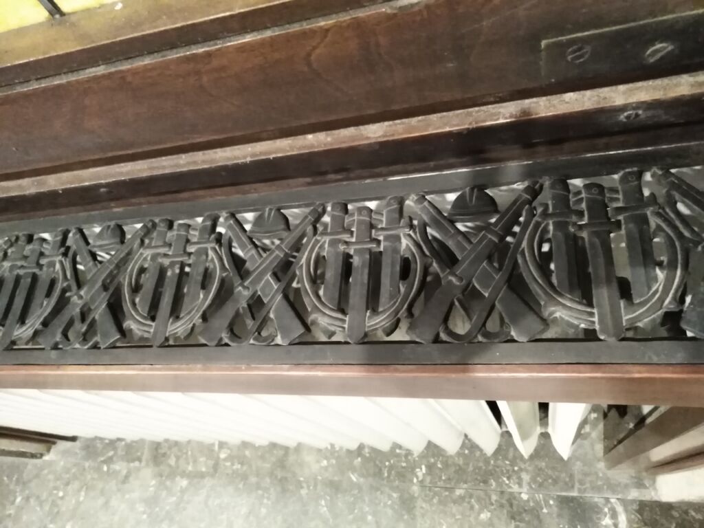 7 - nel G, in cui si vedono sette lance lunghe alla cui sommità è presente una bandiera e due trombe, probabilmente è simboleggiata la Cavalleria, il cui emblema sono due lance lunghe incrociate (FONTE: Esercito Italiano, Arma di Cavalleria e Specialità - https://www.esercito.difesa.it/equipaggiamenti/militaria/Fregi/Pagine/Arma-di-Cavalleria-e-Specialita.aspx);