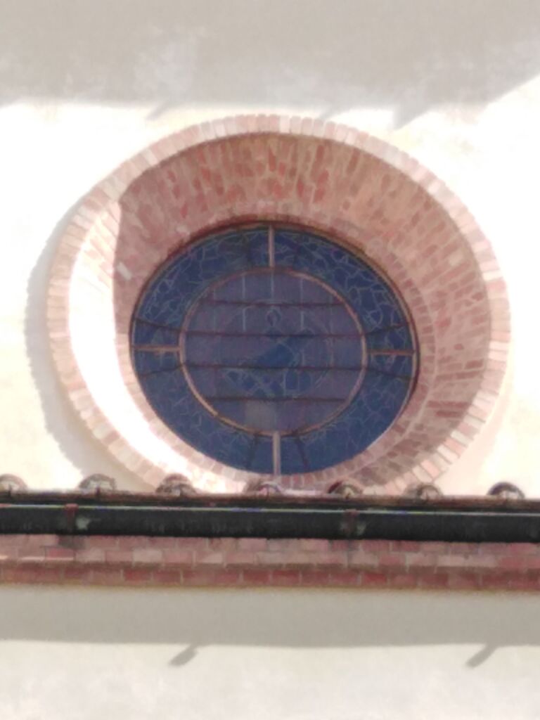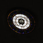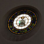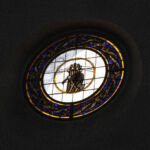 Sulla sommità della rotonda sono presenti otto oculi di forma circolare chiusi da vetrate policrome che presentano una fascia con corona di spine o festone su fondo blu che inquadrano gli stessi simboli presenti nei medaglioni precedentemente analizzati in una versione grafica differente.