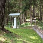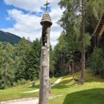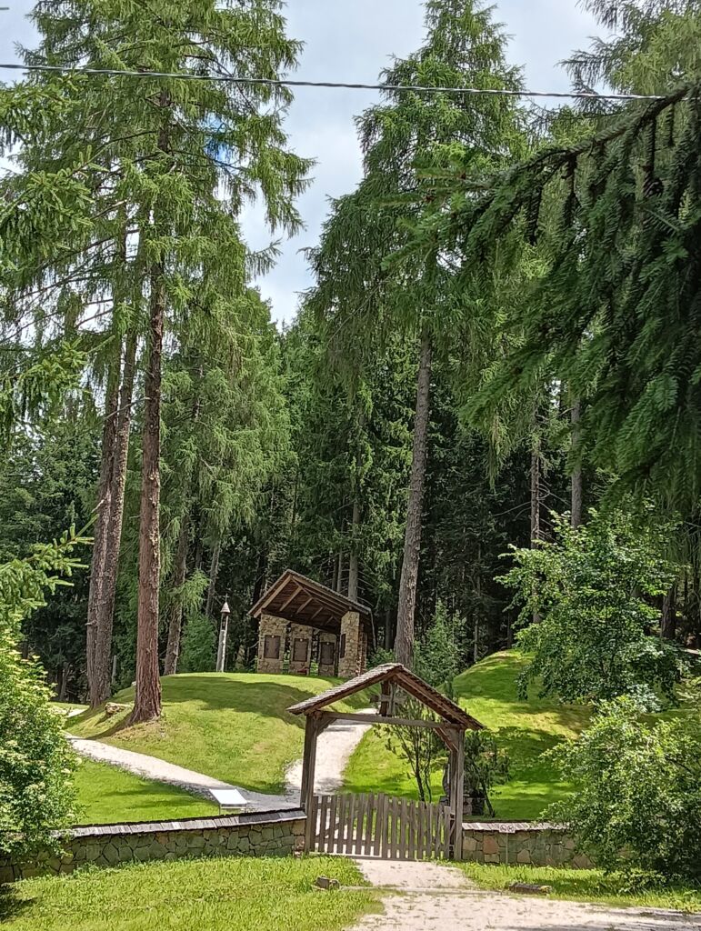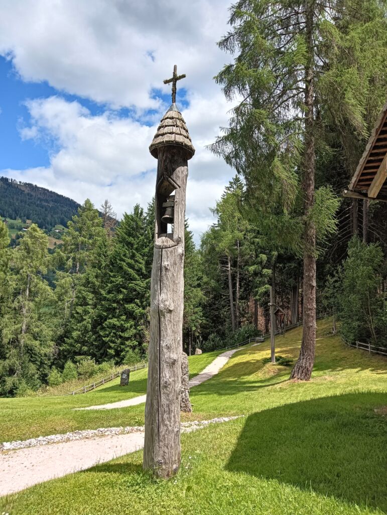 Di fronte alla cappella è stato eretto un alto palo in legno a guisa di campanile, con cella campanaria e campana ed in cima una croce ricoperta di licheni.