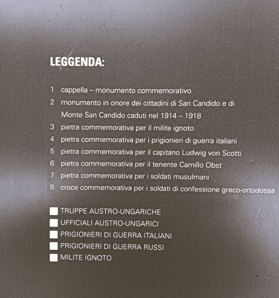 Qui riposano 520 soldati dell’armata austroungarica, tra cui bosniaci prigionieri di guerra italiani, rumeni, russi e serbi e numerosi caduti ignoti in una fossa comune.