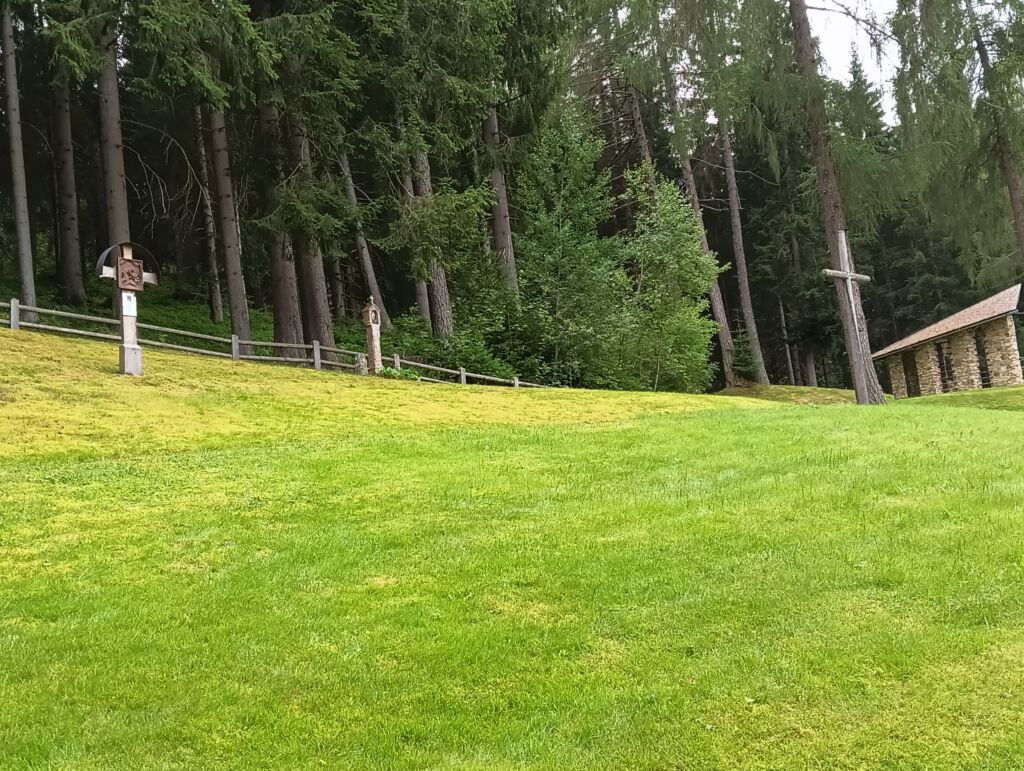 - Alla fine del luglio 1915 vennero seppelliti in questo Cimitero i primi sodati. Il 12 marzo 1916 il cimitero e la cappella furono consacrati ed inaugurati. Dal 2003, l'area cimiteriale, ormai dismessa, fu recuperata a sito memoriale, e, ad Agosto 2004, solennemente consacrata dal vescovo ausiliario di Graz Dr. Franz Lackner OFM