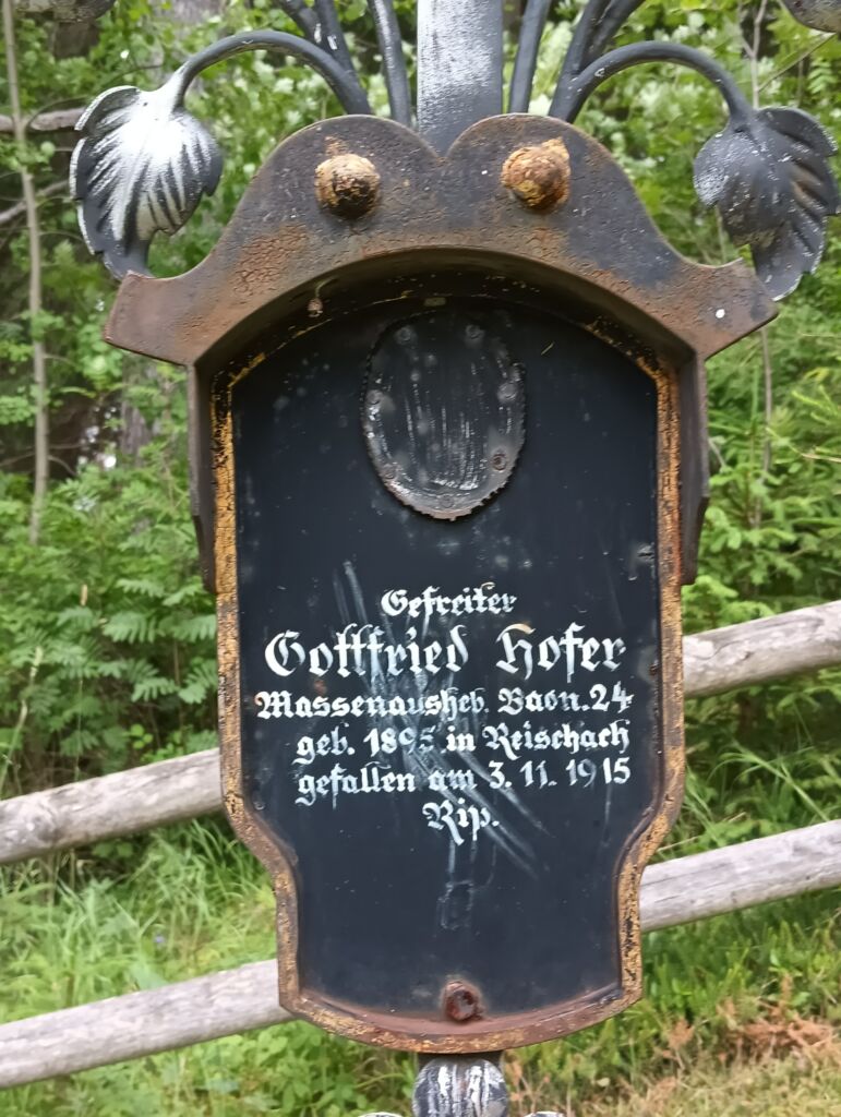 Soldato Semplice Gottfried Hofer, Battaglione di leva, 24° nato 1895 a Reischach, caduto il 3. 11. 1915