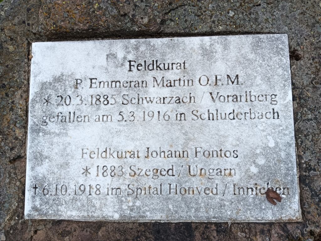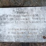 Pietra con targa commemorativa a due cappellani militari: P. Emmeran Marin e Johann Fontos