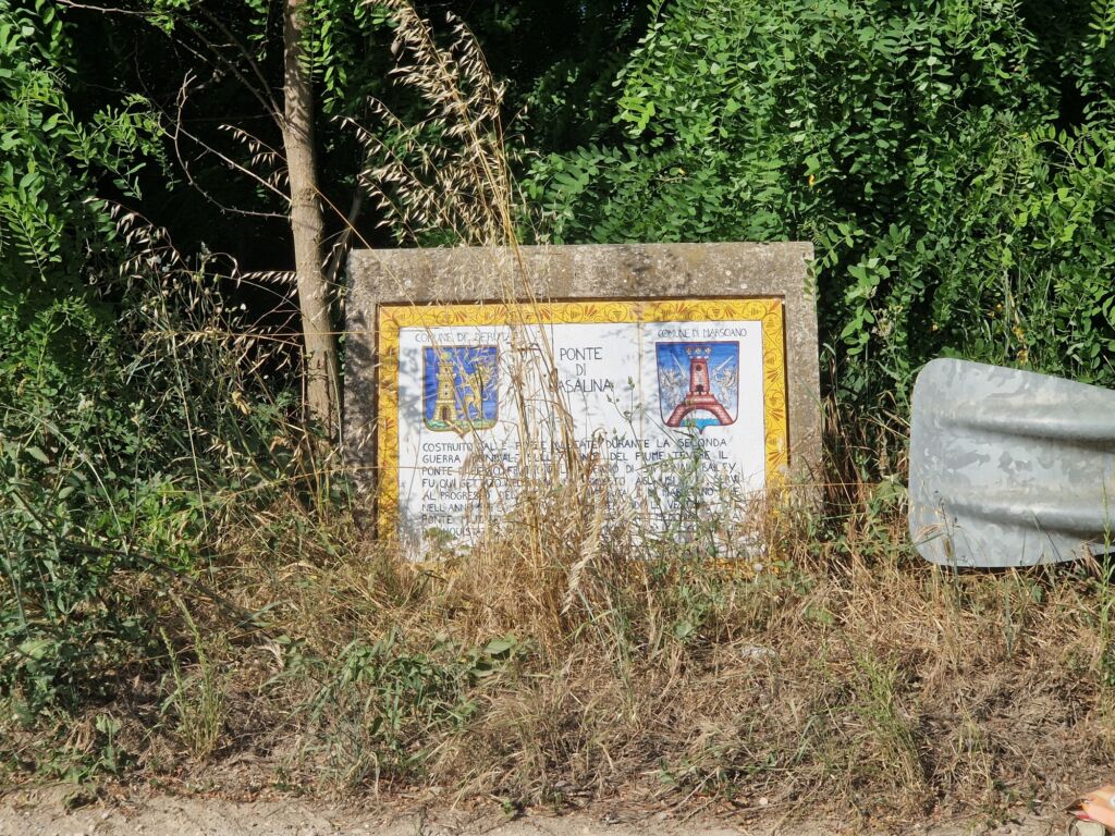 - Cippi ai due lati del ponte; lastra affissa sull'unico elemento del vecchio ponte collocato su un campo a margine del Tevere
