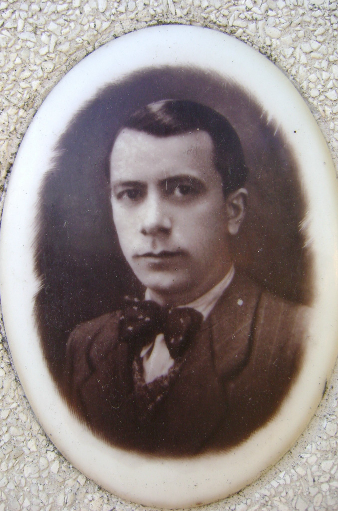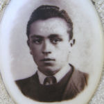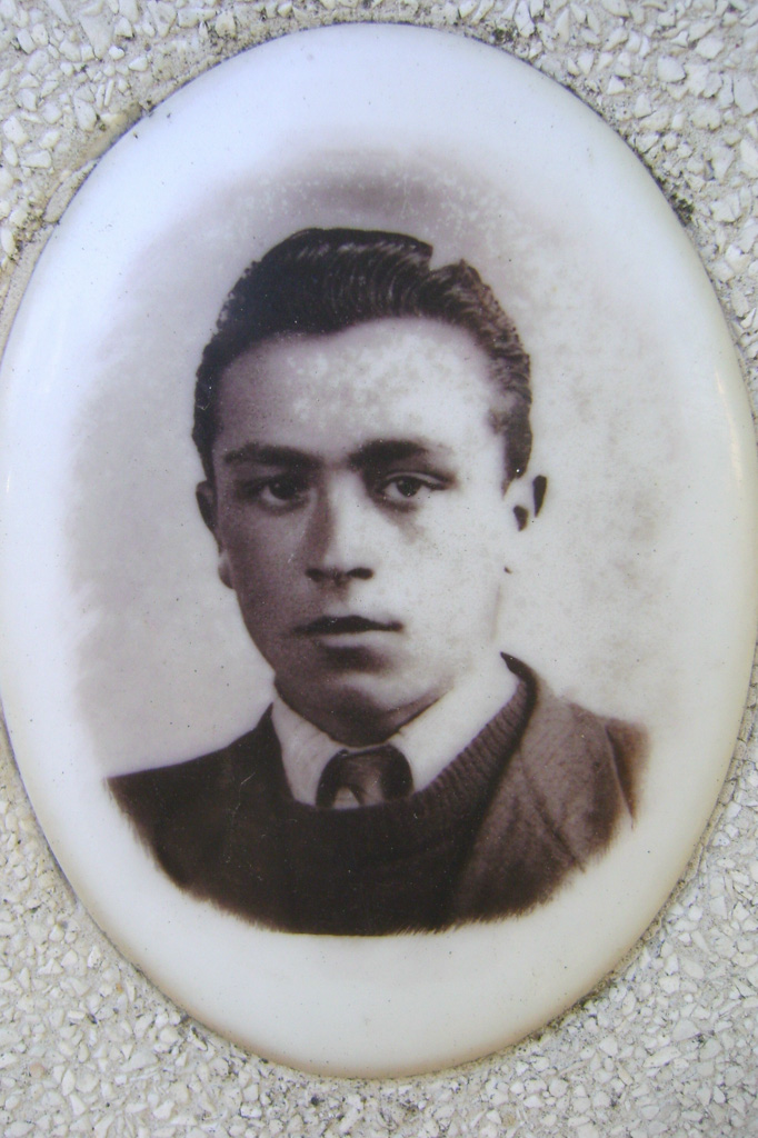 Targhetta tricolore del Corpo Volontari della Libertà. Lampada votiva in marmo.