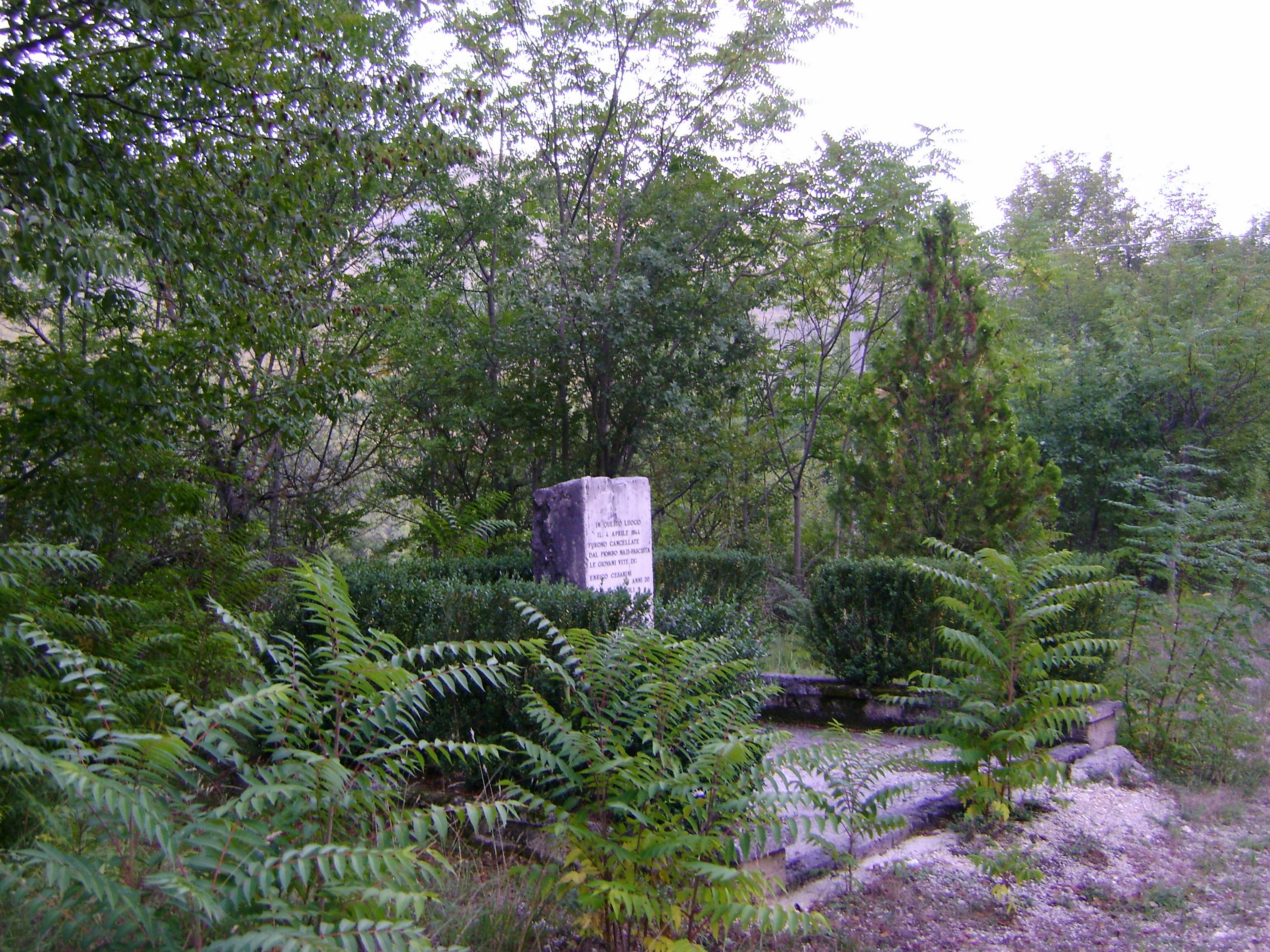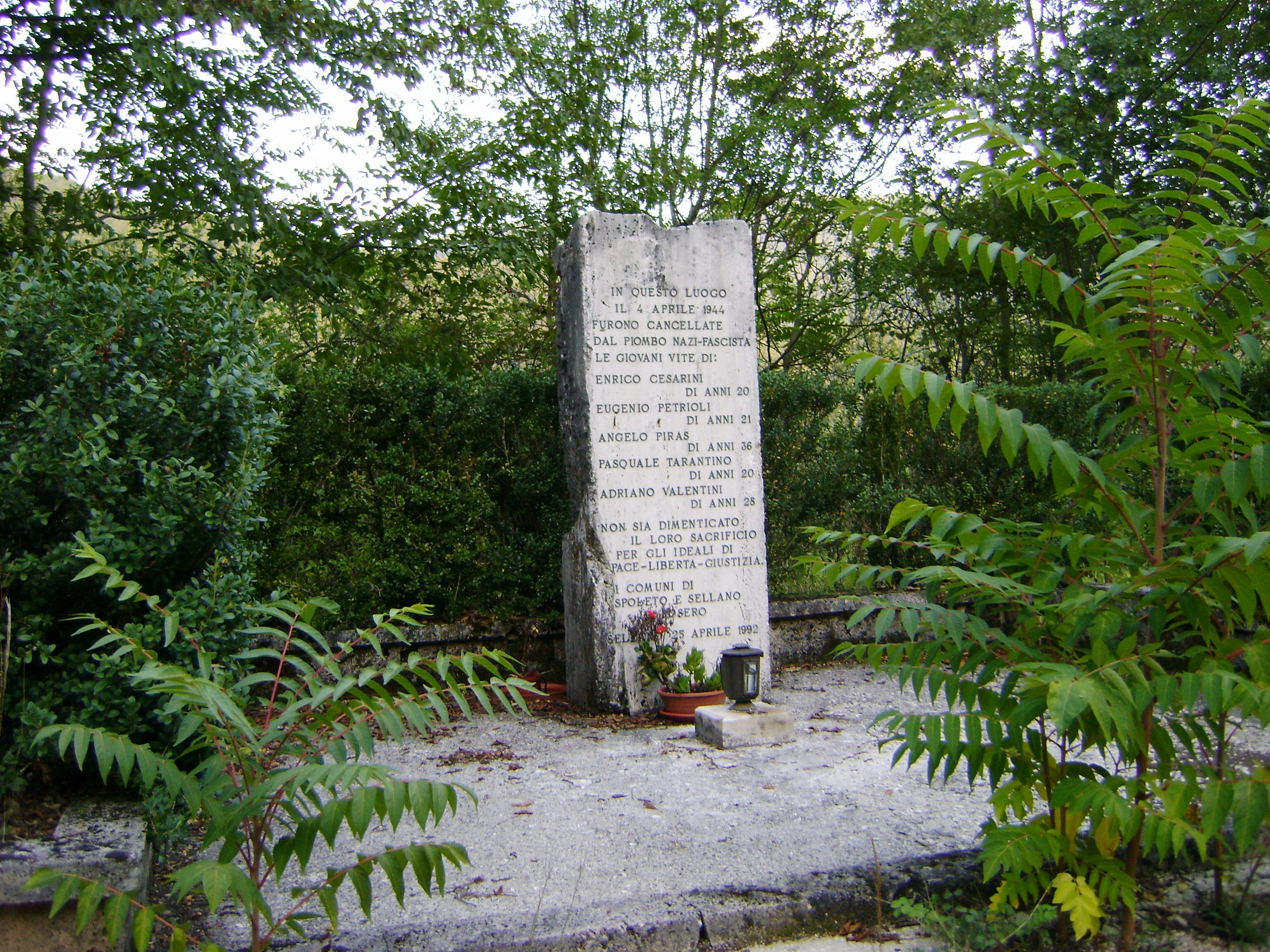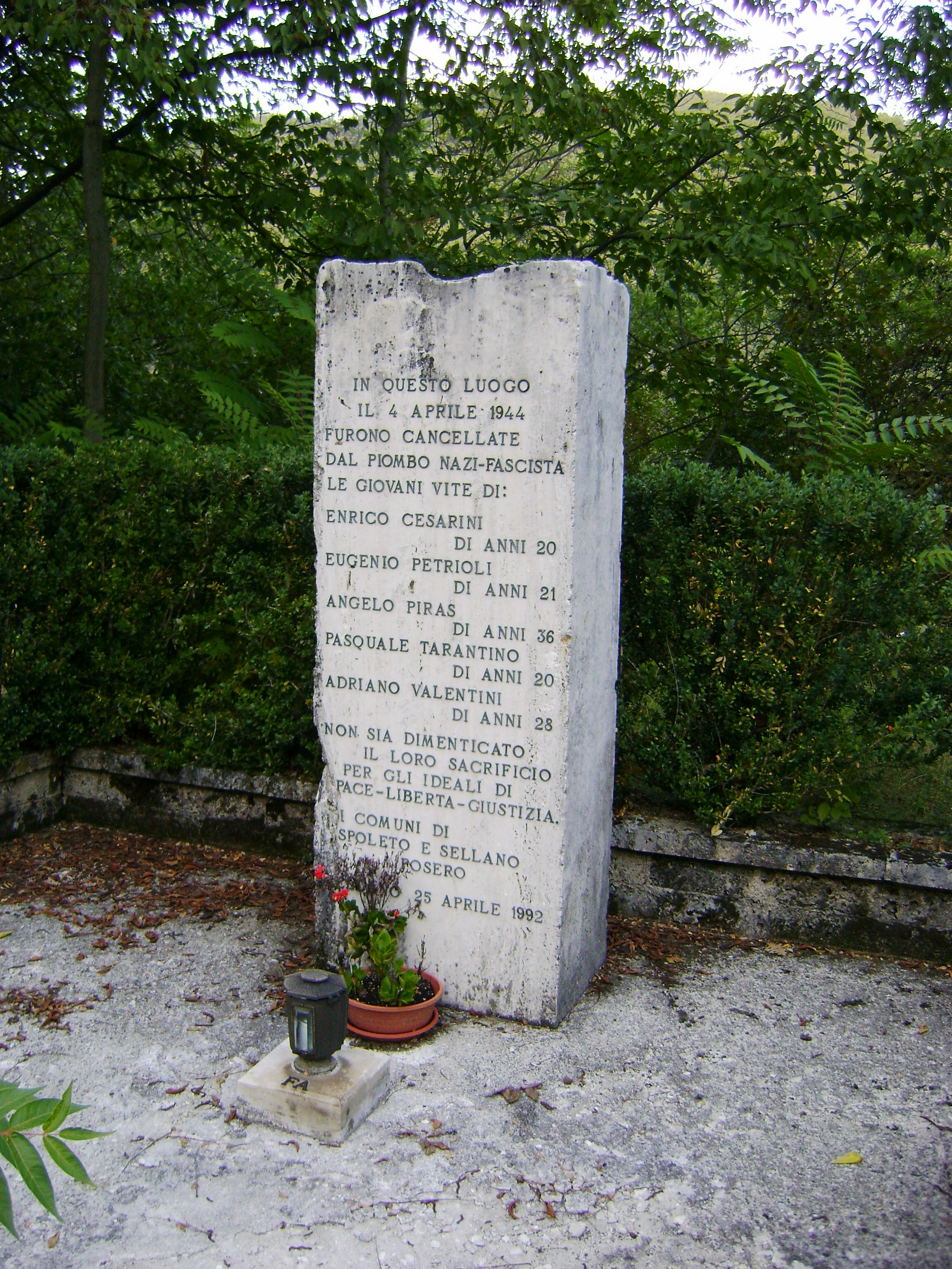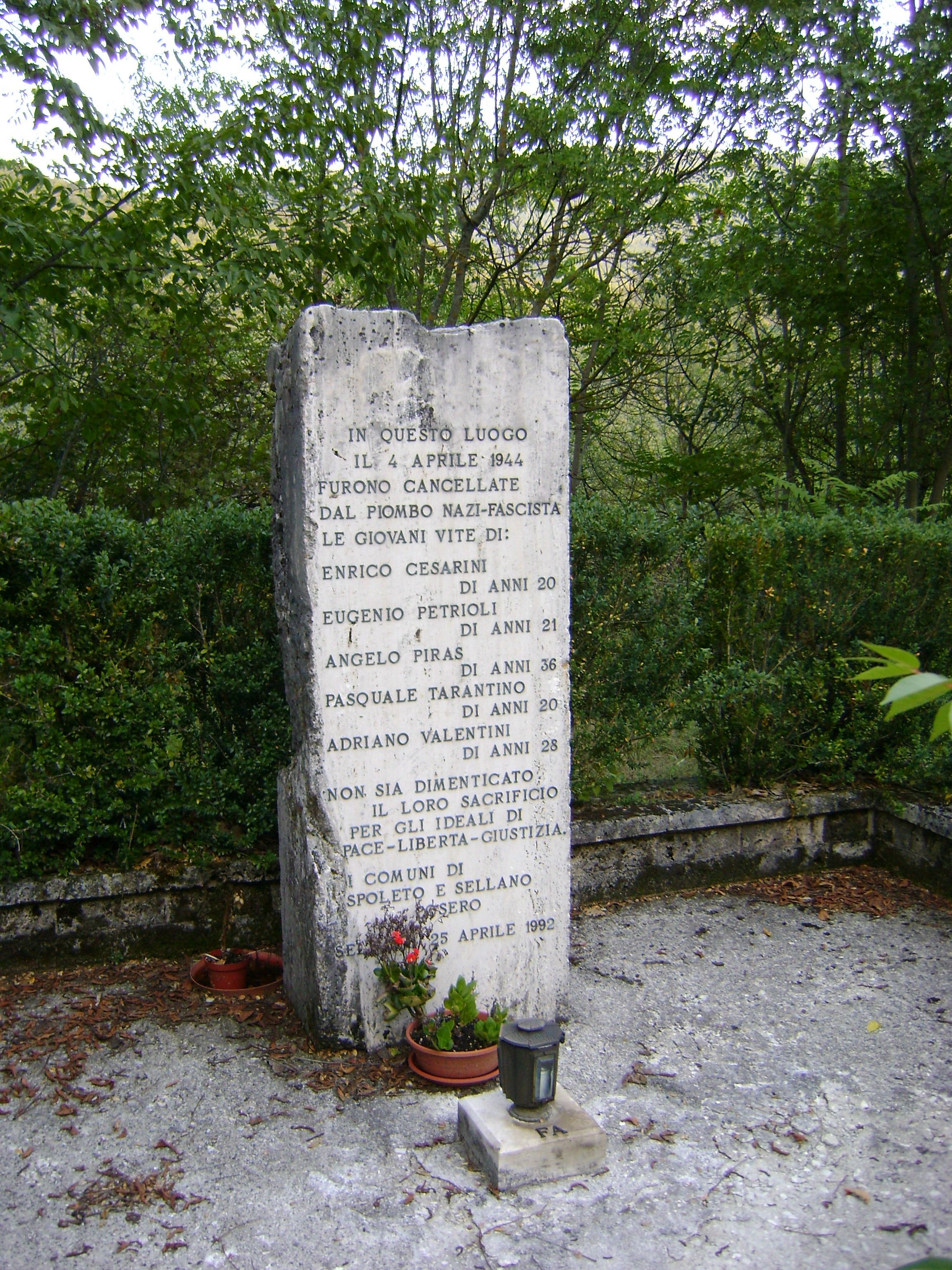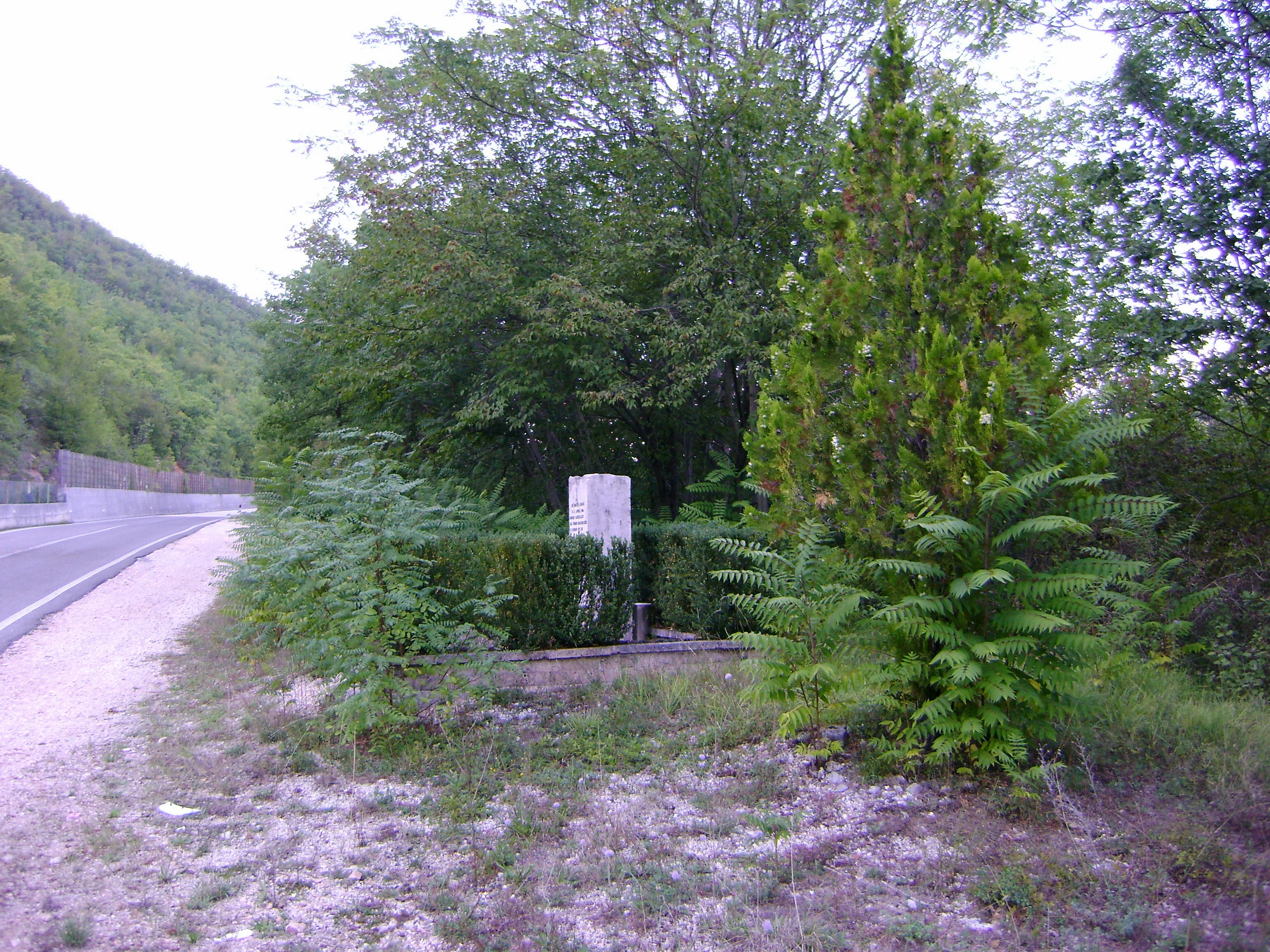 - Pietra per l'area su cui è ubicato il cippo e per il cordolo. Marmo per l'intero cippo e per la base su cui è posta la lampada votiva. Bronzo e vetro per la lampada votiva. Bronzo per i caratteri in rilievo dell'epigrafe.