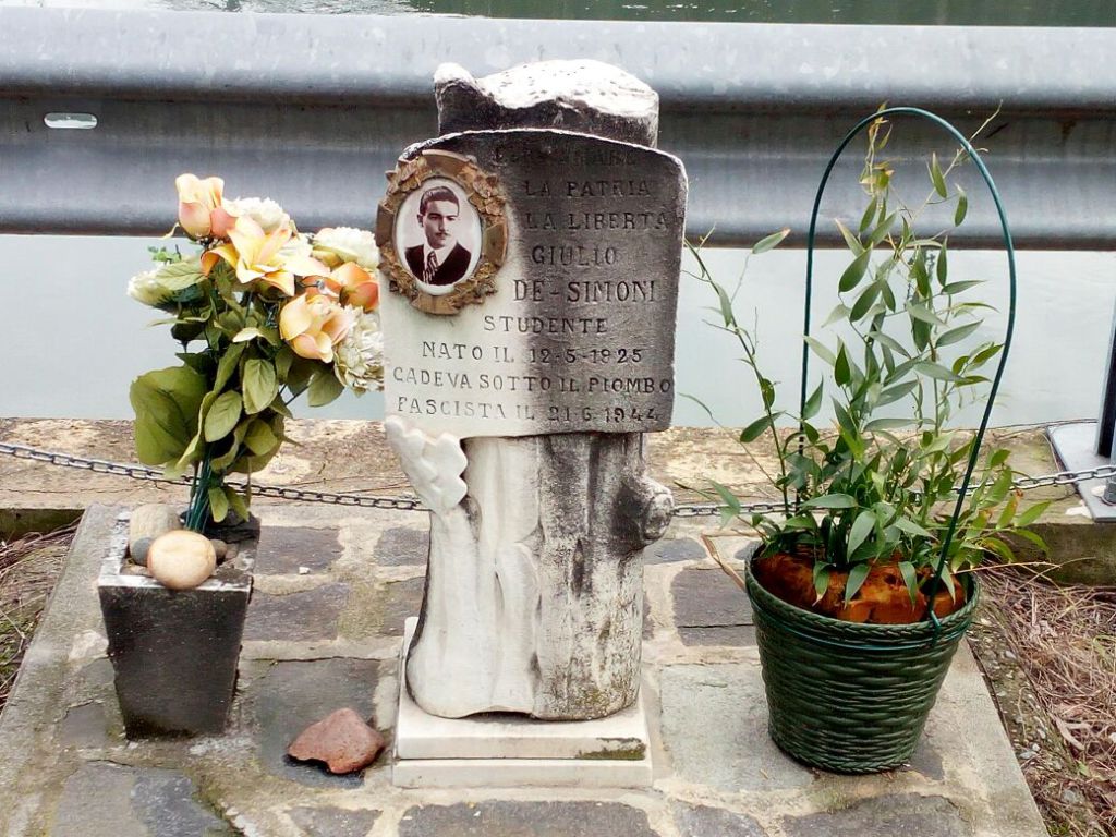- --- / LA PIETRA / LA LIBERTÀ / GIULIO / DE-SIMONI / STUDENTE / NATO IL 12.5.1925 / CADEVA SOTTO IL PIOMBO / FASCISTA IL 21.6.1944