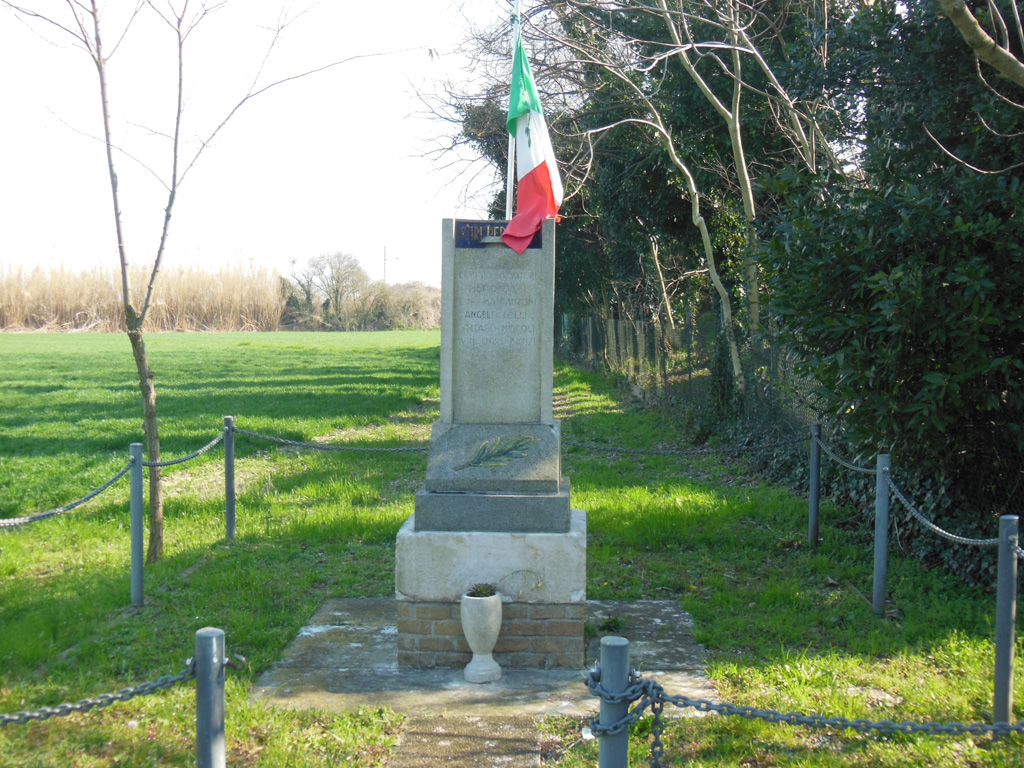 - Struttura interamente in laterizio impreziosita da due inserti in mosaico (una scritta -"caduti per la libertà"- ed un ramo di alloro stilizzato). Sul cippo sventola una bandiera tricolore nuova.