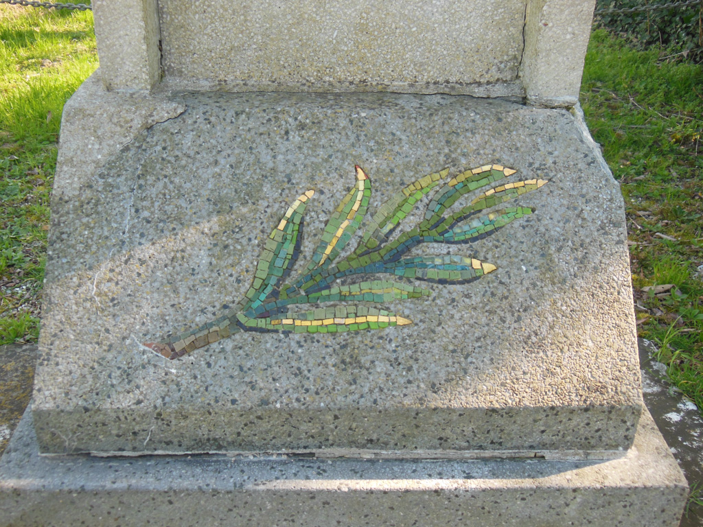 - ai piedi della lapide recante i nomi è rappresentato, in mosaico, un ramo di alloro.