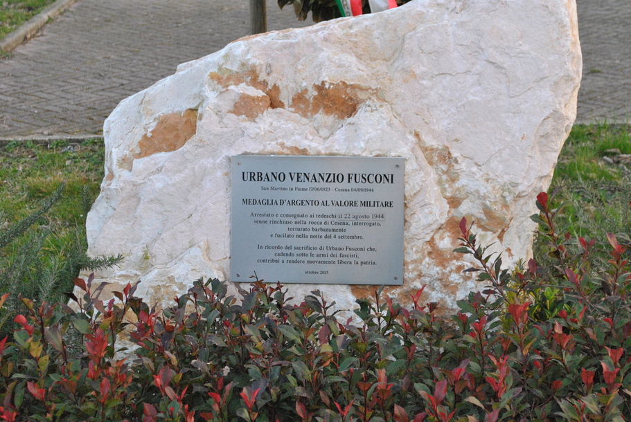 In ricordo del sacrificio di Urbano Fusconi che, cadendo sottole armi dei fascisti, contribuì a rendere nuovamente libera la patria.