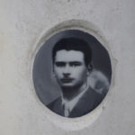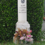 - Basamento quadrato di pietra bianca, con sovrapposto un secondo blocco lavorato con incisioni, culminante con una colonna bianca con incisioni e fotografia.