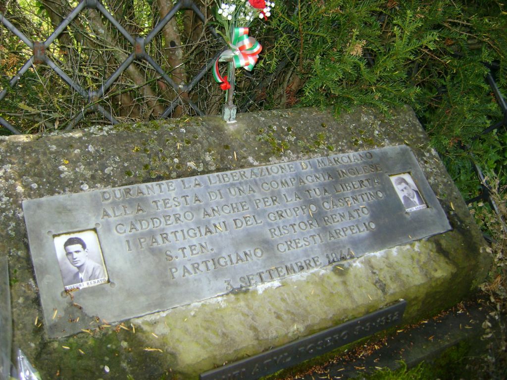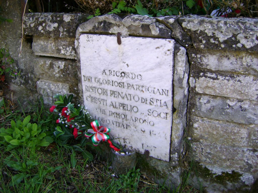 Il 3 settembre del 1947 fu posta la lastra marmorea a ricordo del sacrificio di due partigiani originari di Stia e Soci. Il tre settembre 1992 fu realizzato a cura delle associazioni ANPI e ATVL il cippo lapideo composto di due volumi recanti ognuno una lastra di bronzo con iscrizioni. Il nome del tenente Renato Ristori si trova anche nel monumento ai caduti di Pratovecchio.