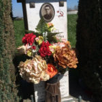 - A destra della foto del caduto è presente il simbolo della falce e del martello, il simbolo politico del movimento operaio.