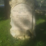 Cippo con lastra in marmo collocata su una pietra con dei ganci in ferro
