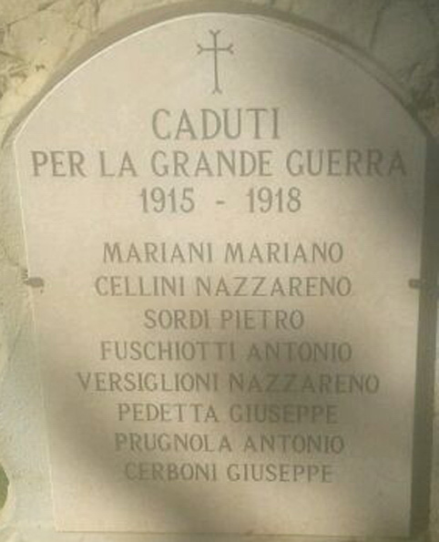 Cippo a ricordo dei Caduti nella prima guerra mondiale di Oro (comune di Piegaro). Sono riportati i nomi di 8 soldati. La Pietra si trova nel cimitero gestito dal comune.