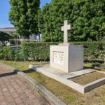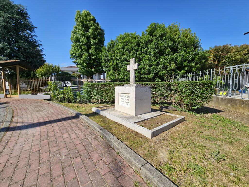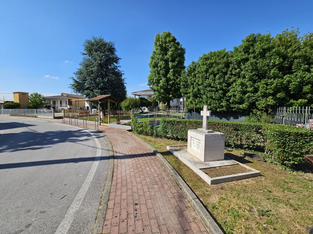Marmo per l’intero cippo: basamento, altare, lapide e croce. Vernice di colore nero a riempimento dei caratteri.