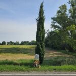 Su una robusta base in cemento che sovrasta un canale di scolo lungo il margine stradale di Via Galvana, a poca distanza dell’incrocio con via S. Lorenzo.