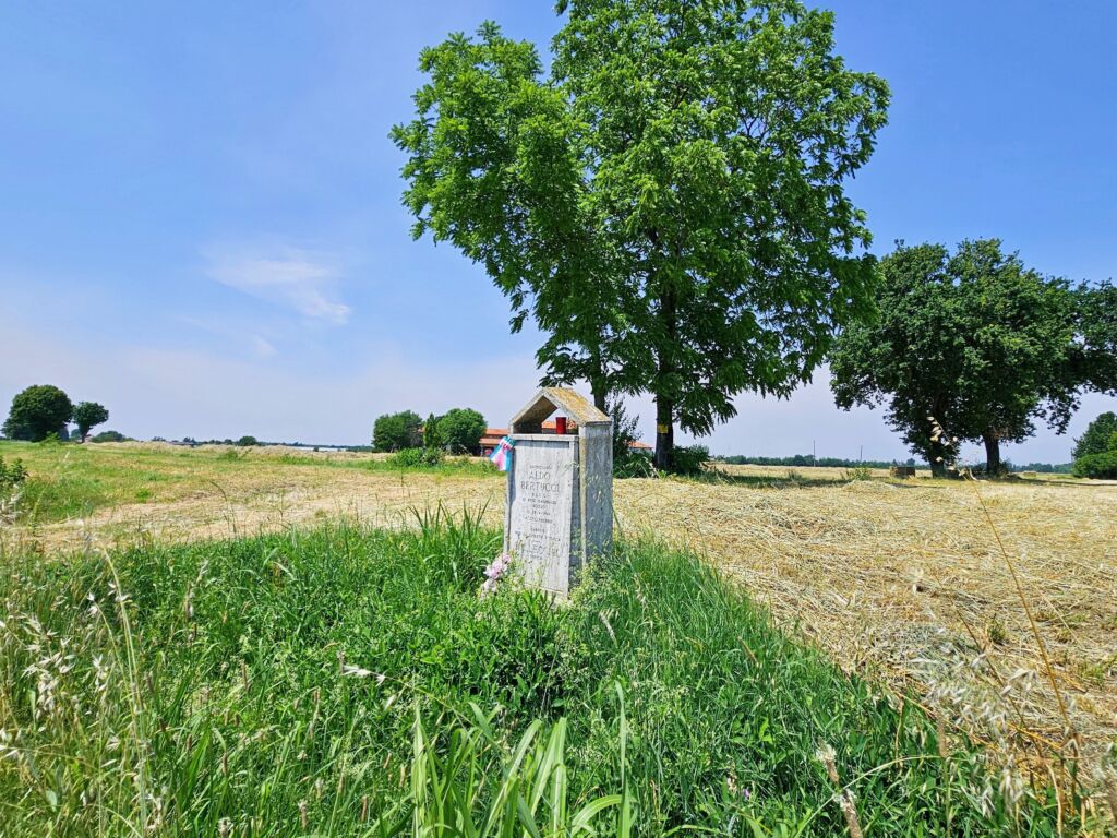 - Marmo per l’intero cippo. Vernice di colore nero a riempimento dei caratteri dell’epigrafe. Cemento per il basamento.