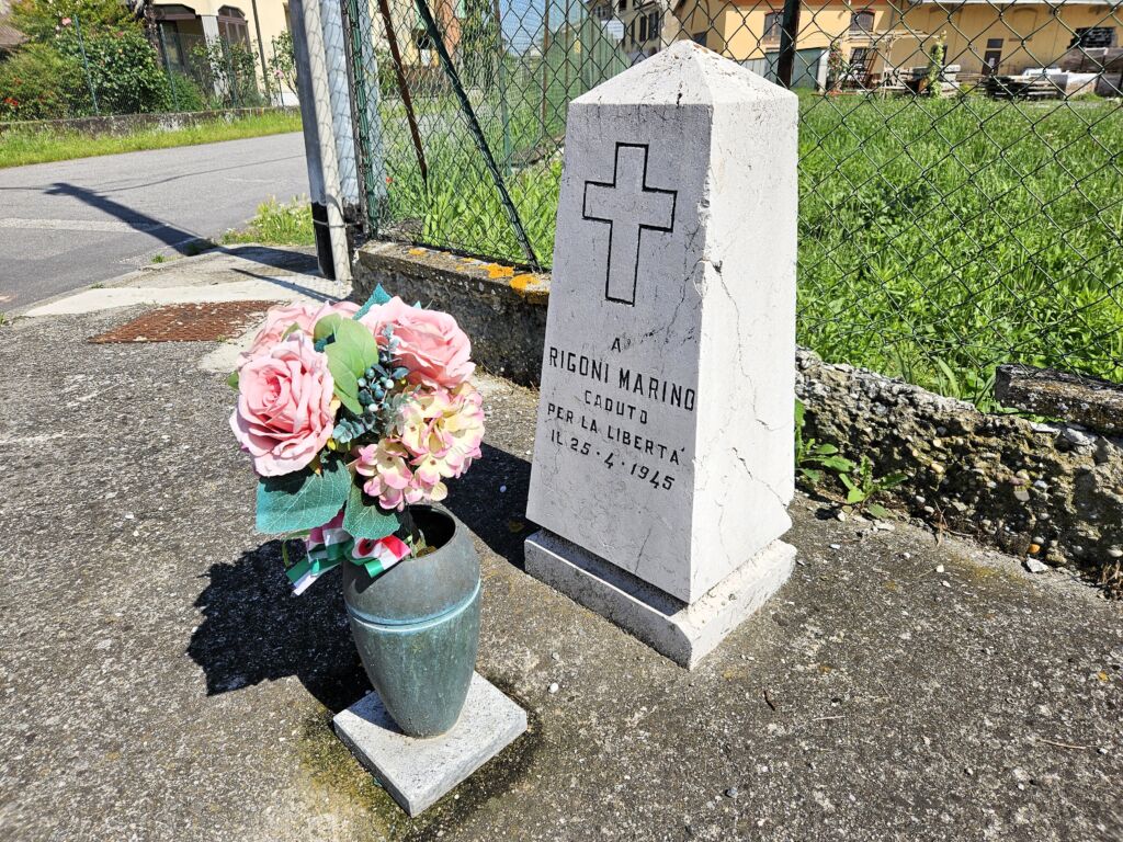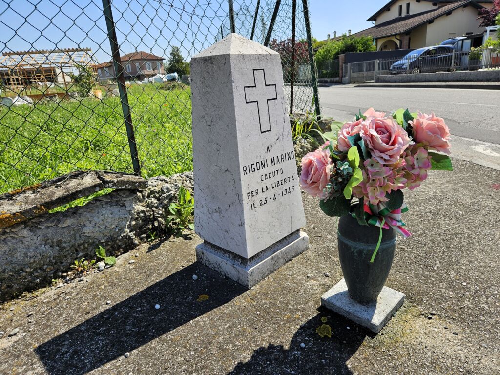 Il 25 Aprile 1945 il giovane Marino Rigoni, armato con un fucila da caccia, si trova a fare la guardia al cascinale dello zio, a Pieve Terzagni (frazione di Pescarolo ed Uniti), dove ha trovato ospitalità in quanto sfollato dal suo luogo di residenza. Sono i giorni della ritirata delle truppe tedesche e dello sbandamento dei fascisti, incalzati dagli Alleati e dai partigiani dopo lo sfondamento della “Linea Gotica”. L’arma gliel’ha fornita proprio lo zio. Mentre si trova a Pescarolo, pare per unirsi ad un gruppo di partigiani intenti a preparare un’azione contro i tedeschi, viene da quest’ultimi ferito e catturato. Portato poco oltre, dove ora sorge il cippo, viene barbaramente trucidato con un colpo d’arma da fuoco alla testa.