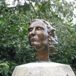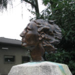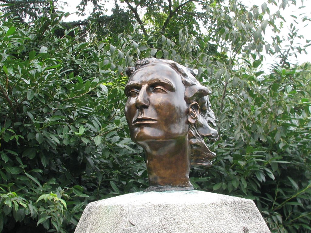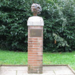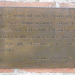 Cippo in mattoni; lastra e scultura in bronzo; terminazione in pietra