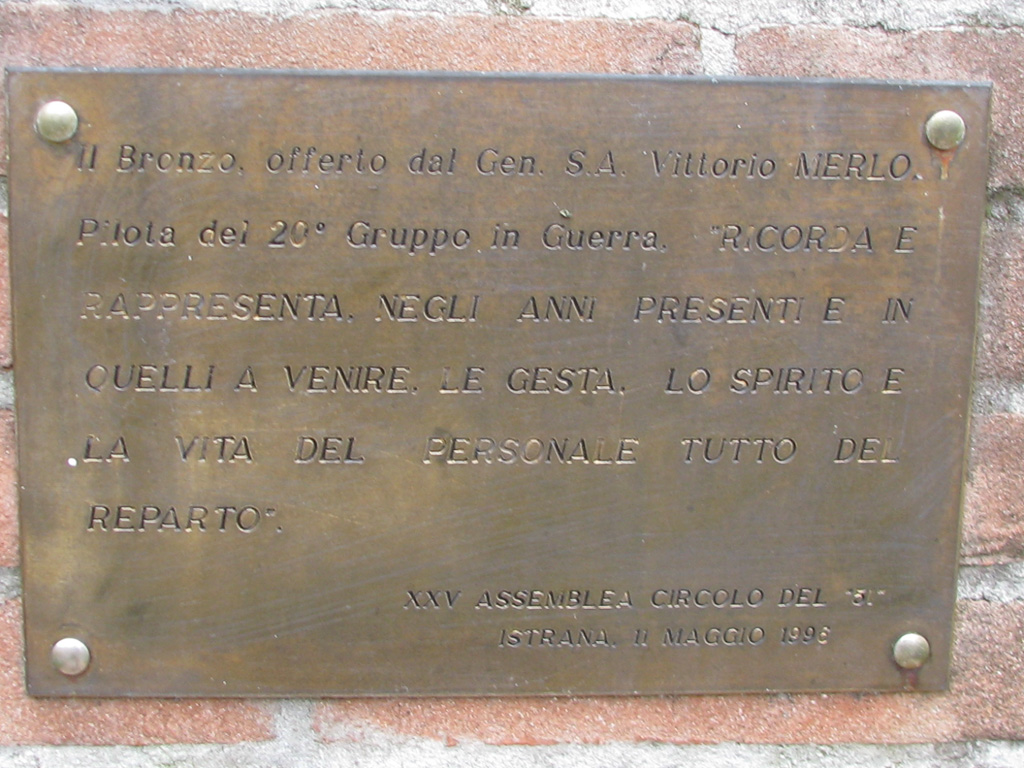 Bronzo donato dal Gen. S.A. Vittorio Merlo in ricordo  delle gesta, dello spirito e della vita del il personale del 51° Stormo. L’opera rappresenta un volto in bronzo posizionato sopra una colonnina in muratura sulla quale poggia una lastra bronzea recante iscrizione incisa.