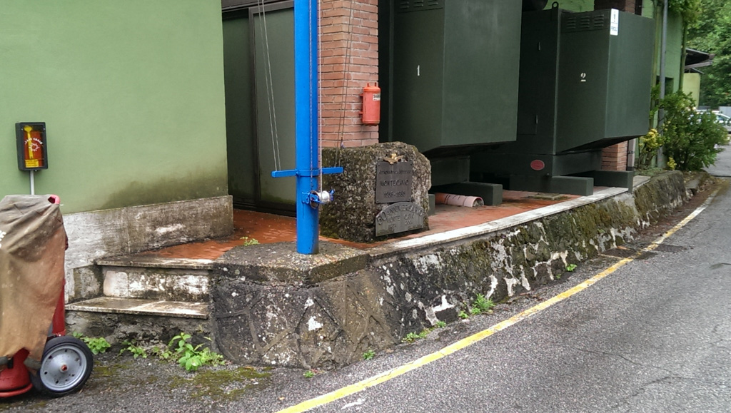 Cippo in pietra lavica, tipica della zona; lastre commemorative in bronzo e ferro