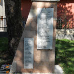 - Il cippo è formato da una struttura in mattoni e due lastre commemorative