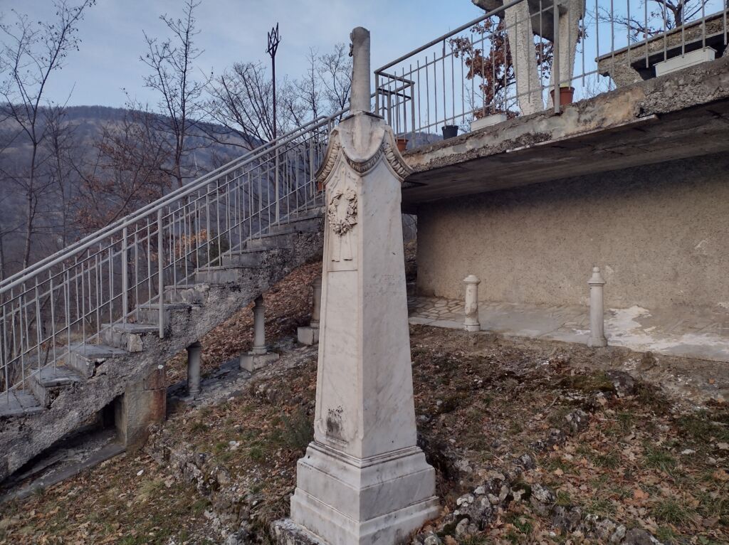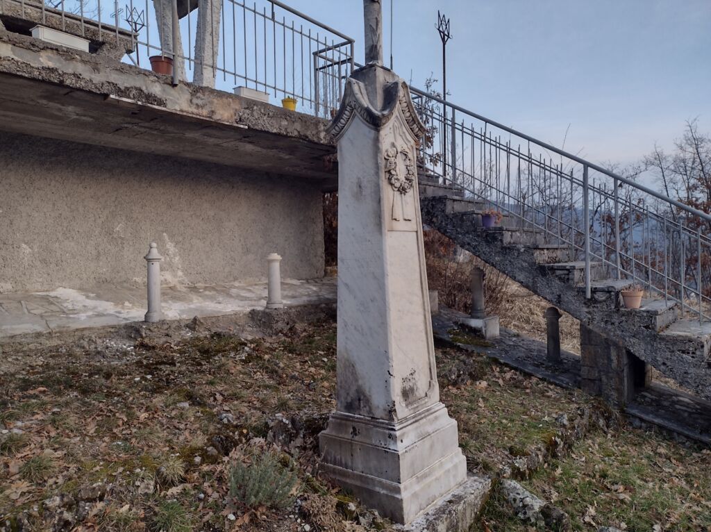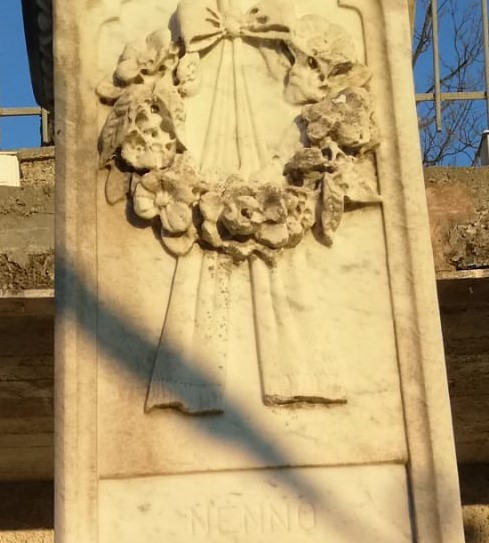 - sono presenti decorazioni in marmo raffiguranti: fiori, un fiocco. Sulla sommità del cippo forse vi era una croce ora non più presente.