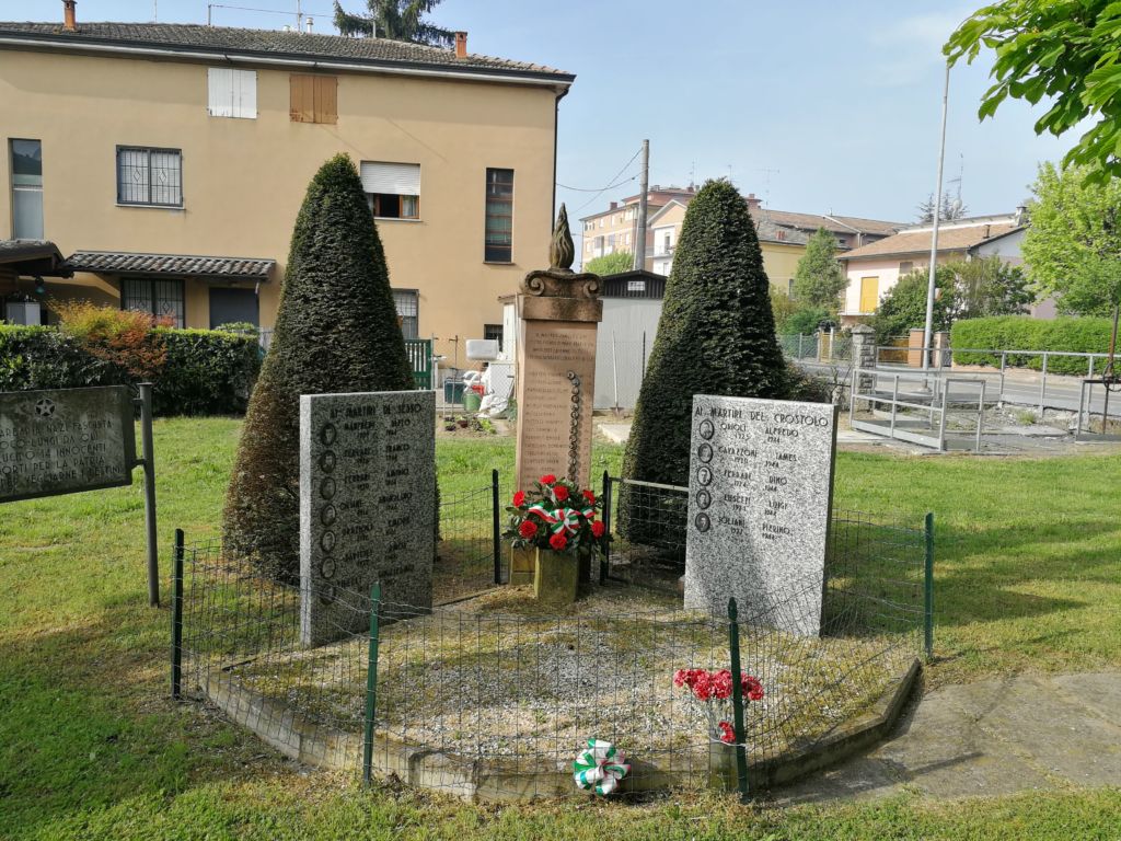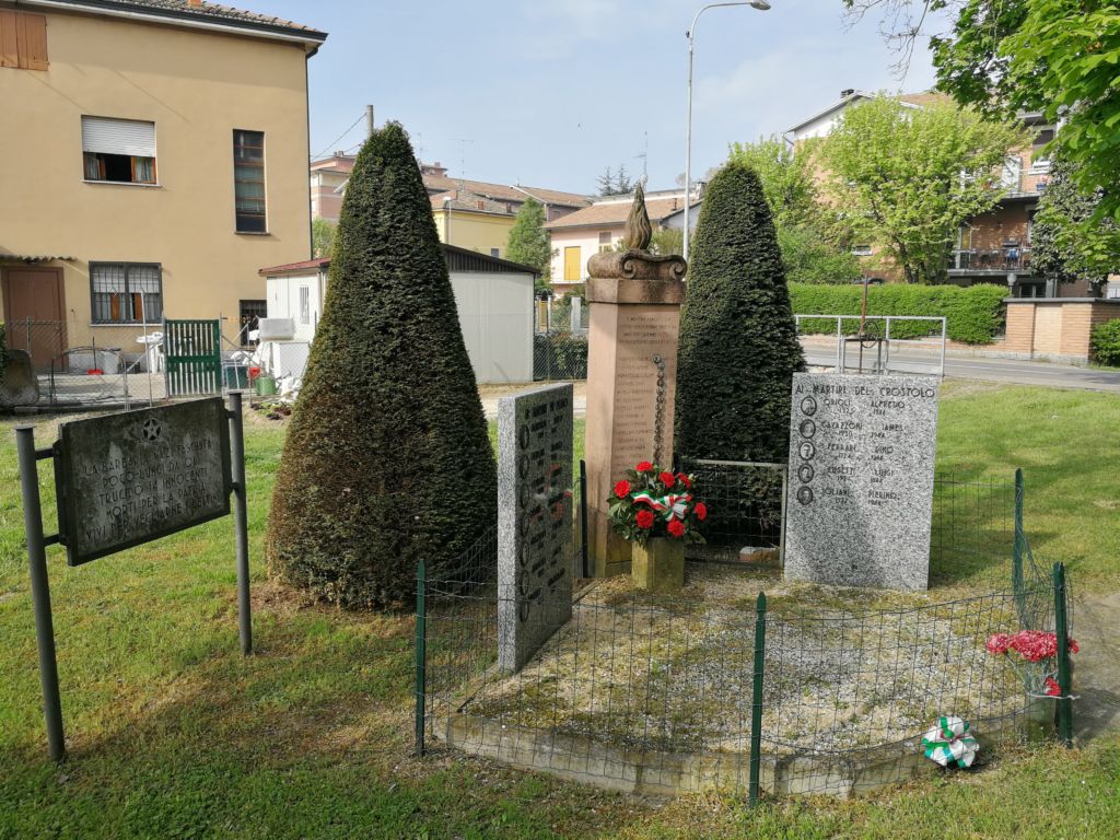 4) cippo dedicato ai cosiddetti Martiri del Crostolo, lungo il margine dell'omonimo torrente, nei pressi di Via IX Martiri;