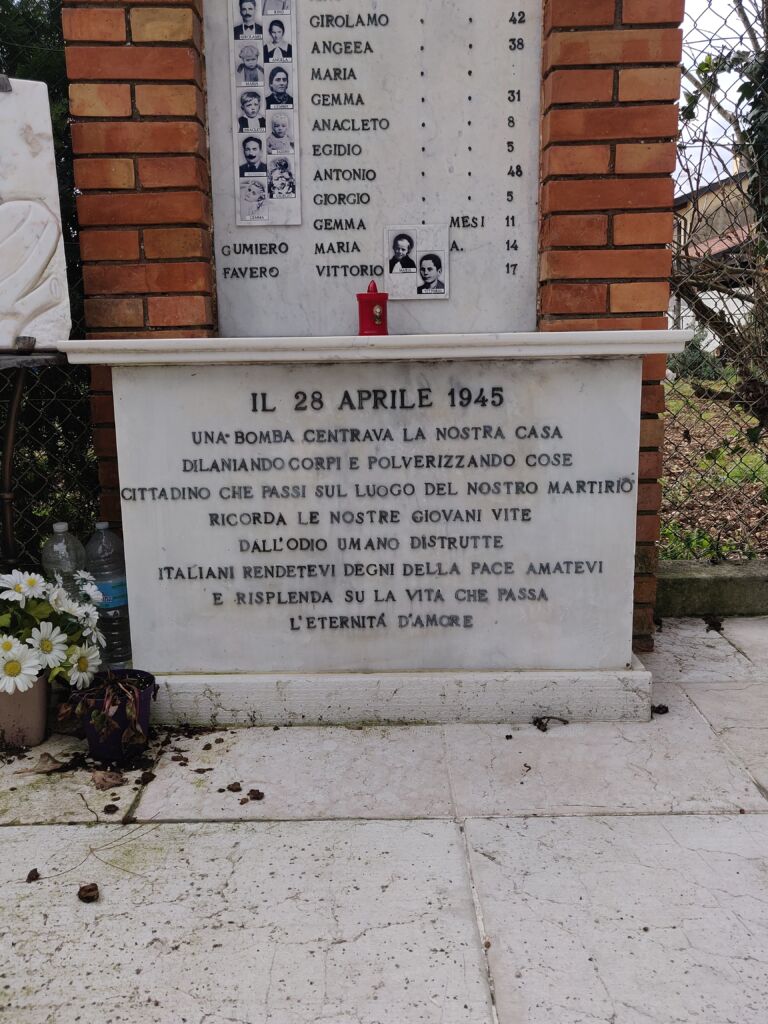 - La famiglia patriarcale Gerolimetto, formata dai nuclei famigliari dei sei fratelli e da tre nipoti acquisiti, abitava vicino alla ferrovia di San Floriano quando il 28 Aprile del 1945 vennero sganciate tre bombe, che erano destinate probabilmente a colpire la vicina ferrovia. Colpirono invece la casa delle famiglie Gerolimetto, uccidendo i presenti e distruggendola completamente. Trovarono la morte in quel giorno 16 membri delle famiglie Gerolimetto, una nipote acquisita e un vicino.