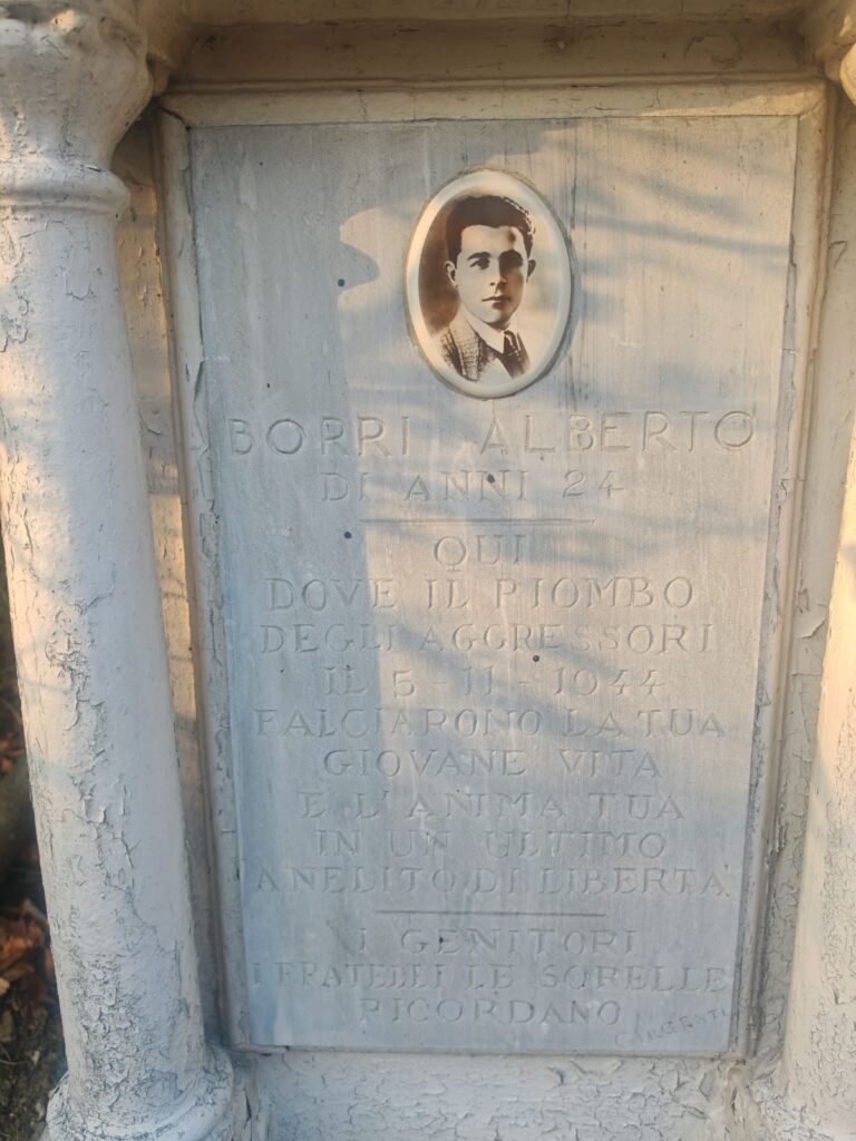 Qui dove il piombo degli aggressori il 5-11-1944 falciarono la tua giovane vita e l’anima tua in un ultimo anelito di libertà.