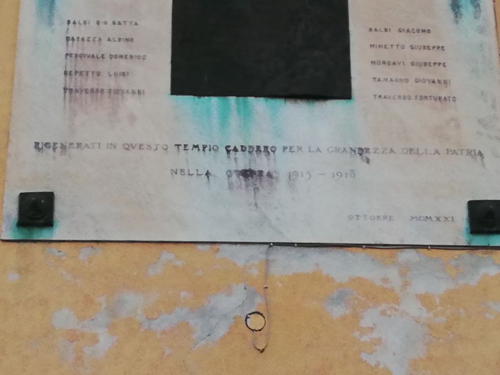 Il bassorilievo in bronzo a causa delle scarse condizioni in cui versa non è leggibile.