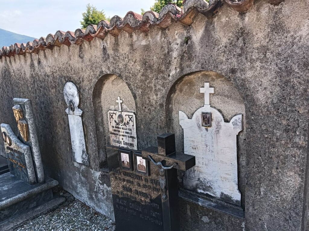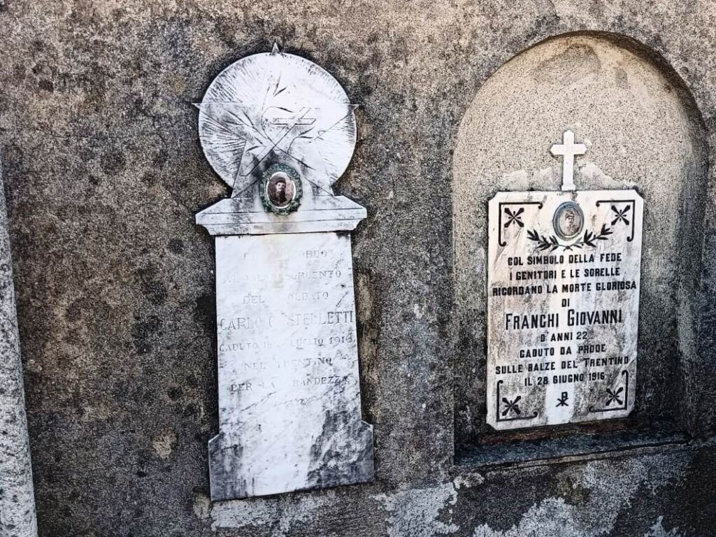 - Sul muro perimetrale della zona vecchia del cimitero comunale, accanto ad altre due lapidi dedicate a Caduti nella Grande Guerra.