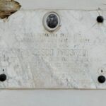 - Lastra di marmo bianco con iscrizione incisa.