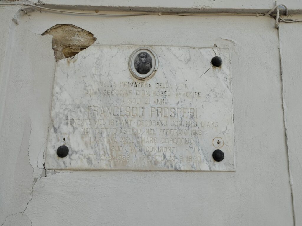 - Prosperi Francesco, di Nunzio, nacque a Chieti il 9 settembre 1899. Durante la prima guerra mondiale fu Tenente nel 18° Reggimento Fanteria. Morì a Chieti il 23 settembre 1920 per malattia contratta in servizio.