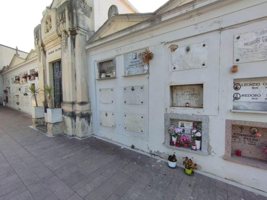 - Nel colombario del perimetro nord del cimitero comunale, di fronte al Campo 4S.
