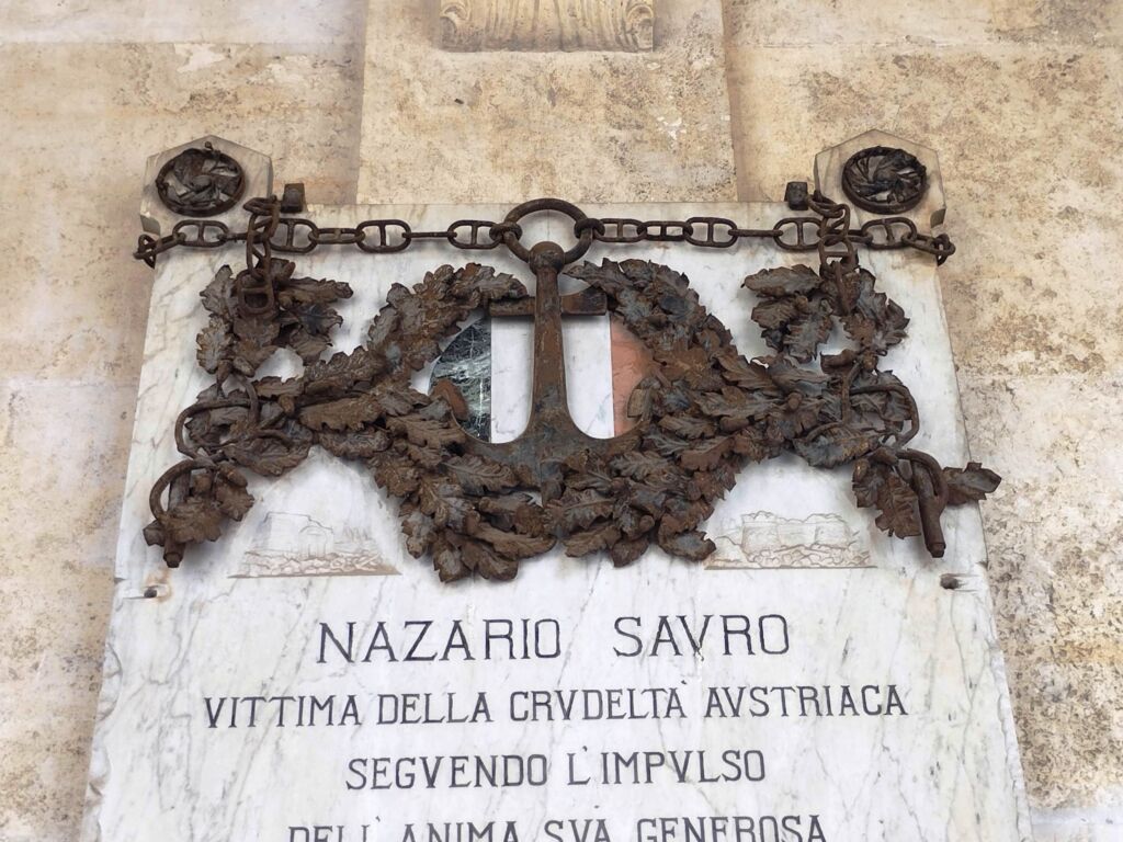 Nazario Sauro nacque il 20 settembre 1880 a Capodistria, all'epoca territorio dell'Impero austro-ungarico. Fervente patriota, ebbe come obiettivo l’unità d'Italia con anche le terre d'Istria e della Dalmazia. Durante la prima guerra mondiale si arruolò quindi volontario nella Regia Marina Italiana raggiungendo il grado di tenente di vascello. Nel luglio 1916 fu catturato dagli austriaci e condannato da una corte imperiale per alto tradimento. Fu impiccato a Pola il 10 agosto 1916 e per tale motivo insignito dal Regno d’Italia con la Medaglia d'Oro al Valor Militare alla memoria.