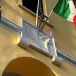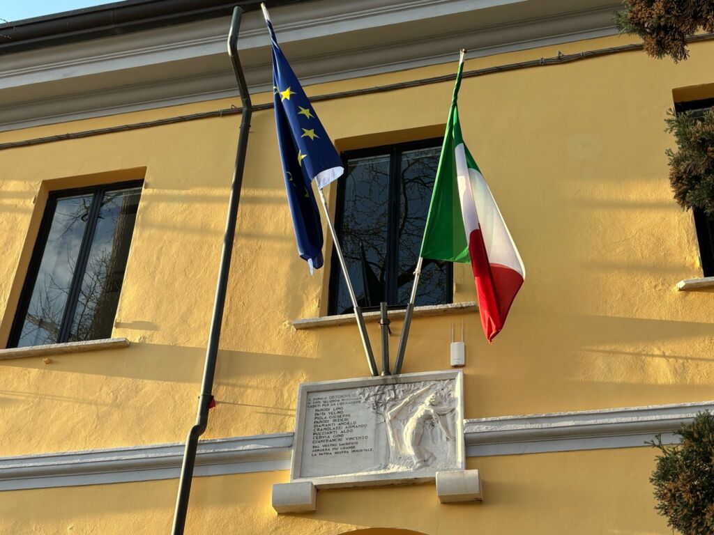 - La figura del soldato colpito a morte si trova rappresentata all’interno di un bosco, i cui alberi simbolicamente richiamano i valori della Resistenza: la quercia, emblema di forza, immortalità e onore, e l’alloro, simbolo di pace e vittoria.