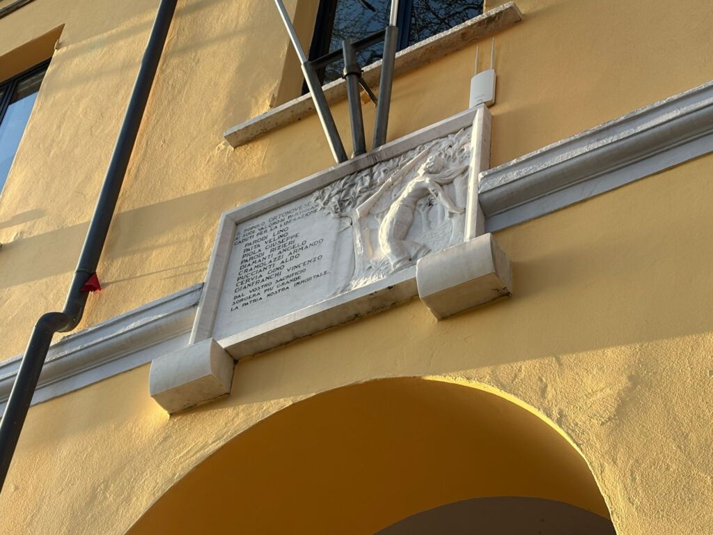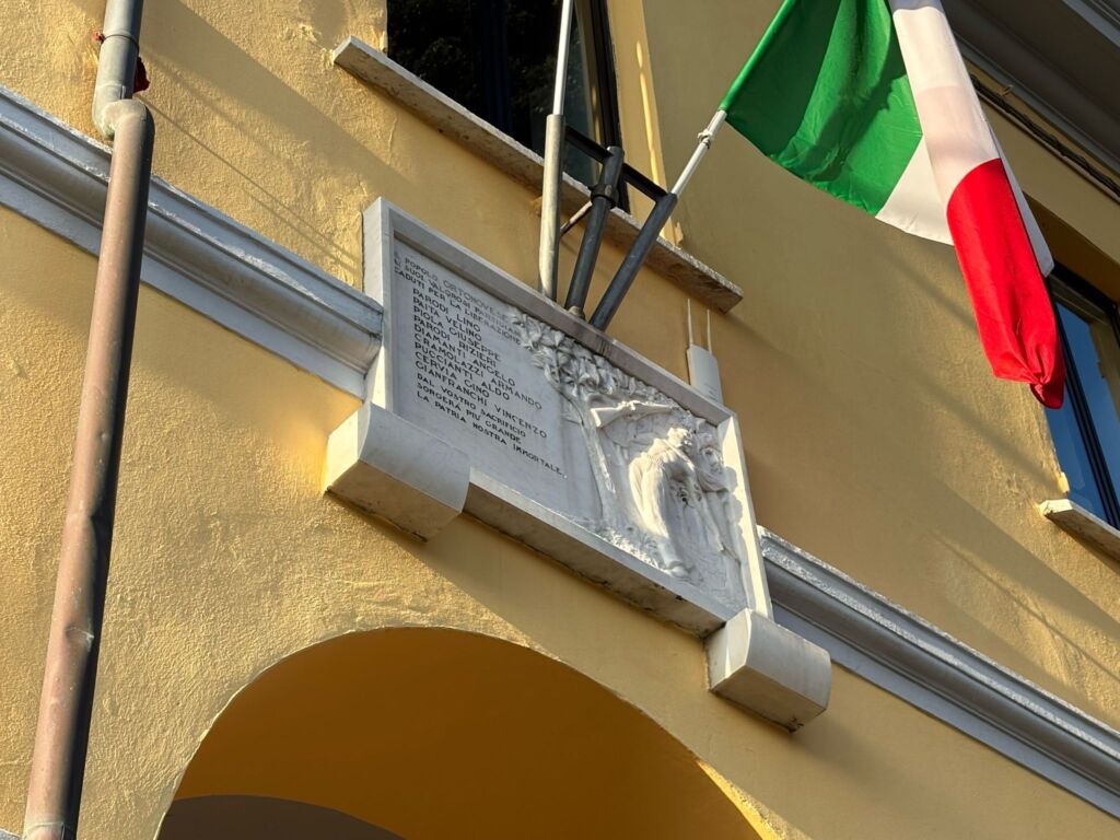 - La pietra commemorativa rende onore ai coraggiosi partigiani di Ortonovo caduti per la Liberazione durante la Seconda Guerra Mondiale. Fra questi, Parodi Lino cadde a Canova di Aulla (Massa Carrara) il 24 luglio 1944 e fu insignito della Medaglia d’Argento alla Memoria. Paita Velino il 18 novembre 1944 partecipò a una rivolta a Ponte Bettigna, lungo la via Aurelia. Mentre cercava di fuggire con Liliana Bianchi, venne colpito da una raffica di mitragliatrice. L’evento prese il suo nome e ispirò la formazione della Brigata Lunense. Piola Giuseppe morì a soli diciotto anni durante un rastrellamento nei pressi del “tornante” di Ortonovo, vicino al cimitero, insieme al coetaneo Cervia Gino. Parodi Rizieri, padre di Lino Parodi, fu un antifascista convinto e subì numerosi attacchi da parte delle Brigate Nere. Venne ucciso a Castelnuovo Magra il 9 novembre 1944. Puccianti Aldo fu arrestato nel rastrellamento del 29 novembre 1944 e condotto alla caserma di La Spezia. Il 3 aprile 1945 tentò la fuga ma venne scoperto, processato e fucilato il giorno seguente. Gianfranchi Vincenzo fu arrestato durante il rastrellamento insieme a Puccianti Aldo, tentò la fuga con lui, ma fu catturato e fucilato. Nella lapide è impresso anche un messaggio che esprime la riconoscenza della comunità per il sacrificio dei suoi caduti. La formulazione dell'iscrizione, risalente a un periodo ancora vicino agli anni del fascismo e della guerra, riflette un sistema di valori legato a quell'epoca.