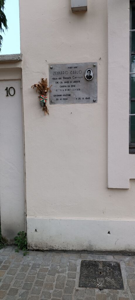 Morì ucciso dai tedeschi (presumibilmente nel luogo dove è affissa la lapide) il 26 aprile 1945, non ancora ventenne.