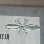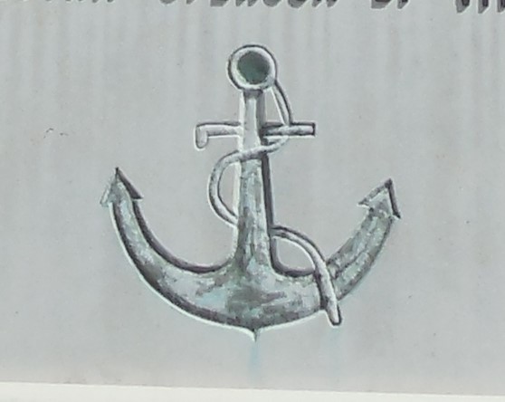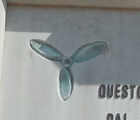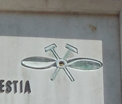 - In alto a sinistra un’elica a tre pali; in alto a destra un’elica a due pali con due martelli crociati; in basso al centro un’ancora