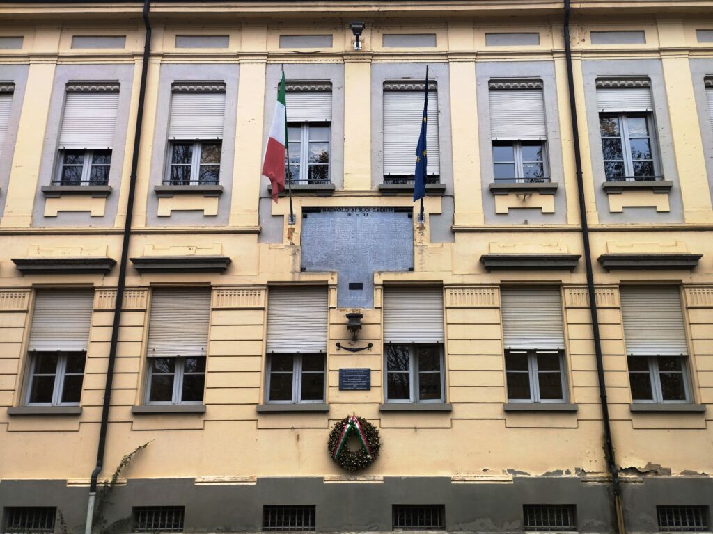 - Al centro della facciata dell’Istituto Comprensivo "E. Comparoni".