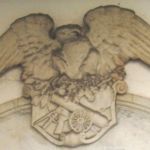 - Sulla lapide si notano diversi simboli: innanzitutto l'aquila con le ali spiegate in posizione dominante, è il simbolo del potere.